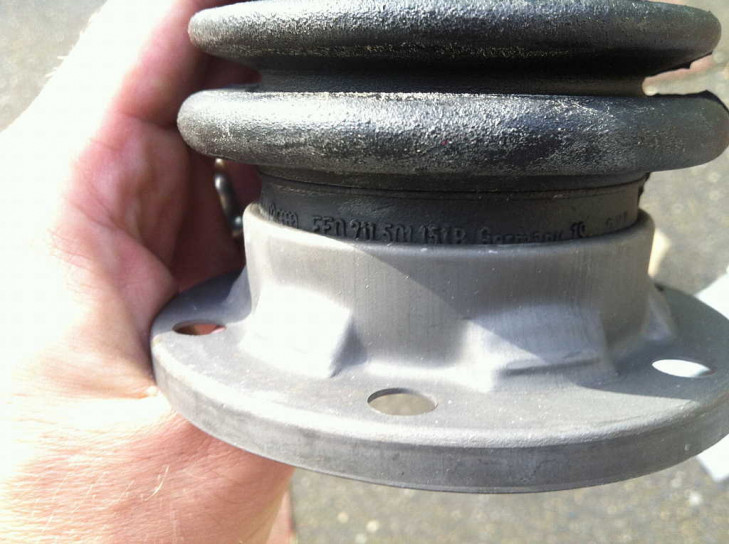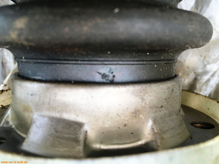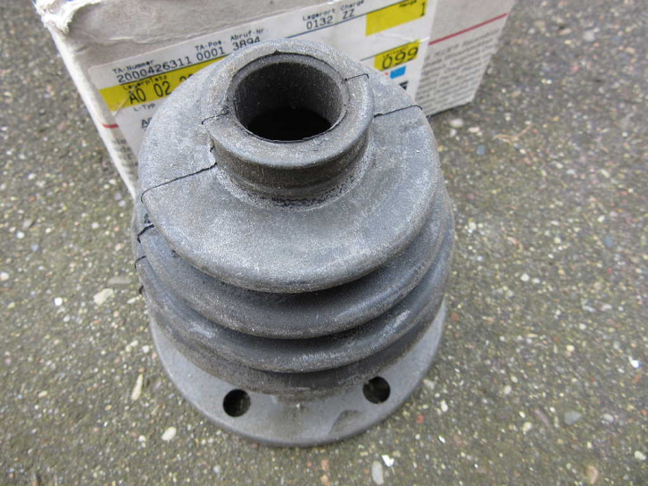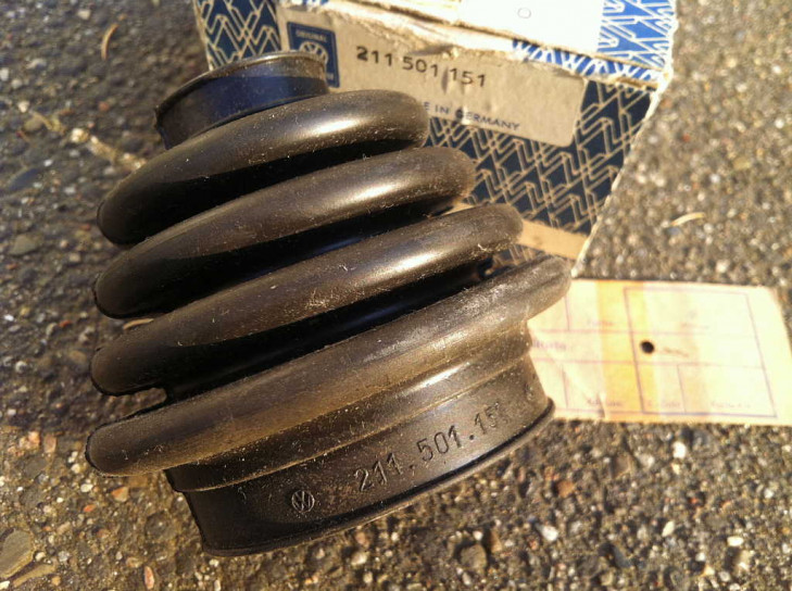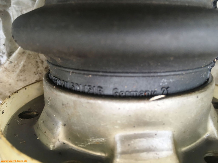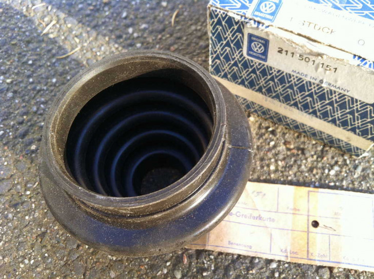 Im Unterschied zur unten gezeigten Manschette der neuen VW 251 598 201 Packung ist die Manschette 1970 noch glatter. Innen ist in dieser 1970er Manschette auch keine Gummiringkante wie im neuen Modell.
