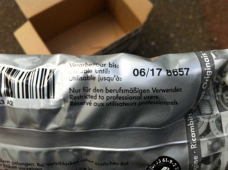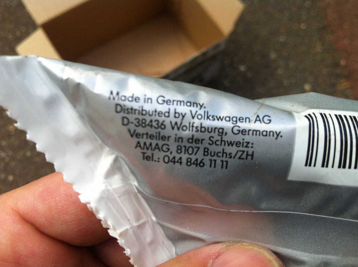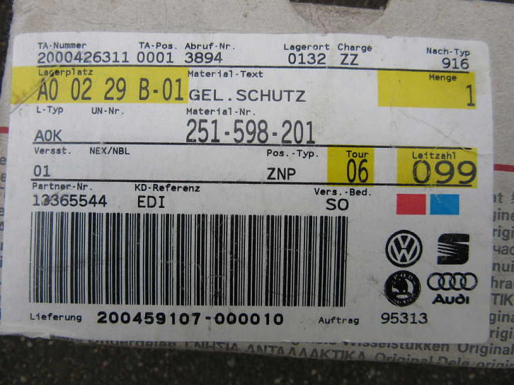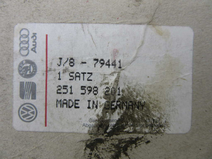 Auf der VW (+ Audi+ Seat + Skoda...) Verpackung steht die Bestellnummer 251 598 201, auf der Manschette am Rand unter der Metallfassung steht 211 501 151 B. Im Set enthalten sind der Sprengring und das Hochtemperaturfett für das zu schützende Kugellager. Der Metallring ist scheinbar schwarz chromatiert - nicht wie bei vielen anderen gelb chromatiert. Auf den Produkten steht (Made in) Germany.