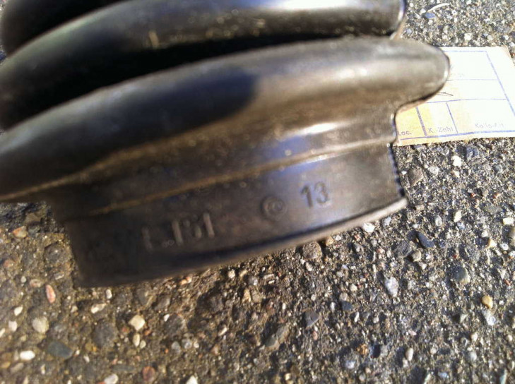 Auf der Manschette selbst steht am Rand zur Metallfassung einiges - leider immer nur halb lesbar - einige runde Prüf- oder Zeitstempel mit Zahlen, dann VW und Audi Zeichen, dann "FE0", dann "211 501 151 B", "Germany", "21", und dann wird es unleserlich.
