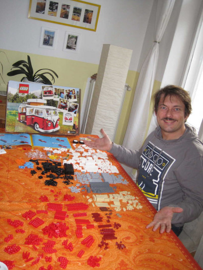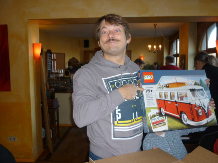 Als große Geburtstagsüberraschung gab es einen LEGO-T1-Bulli - auch fast passend zum Alter - 16 Jahre plus... na, gut... plus-plus-plus-....