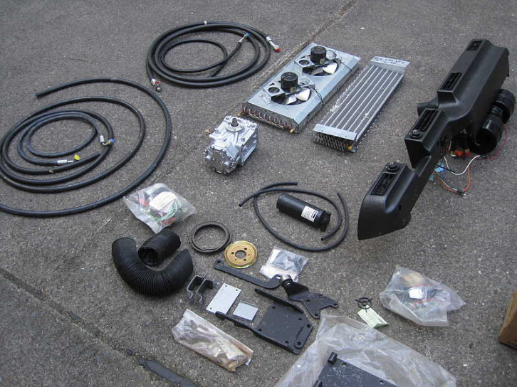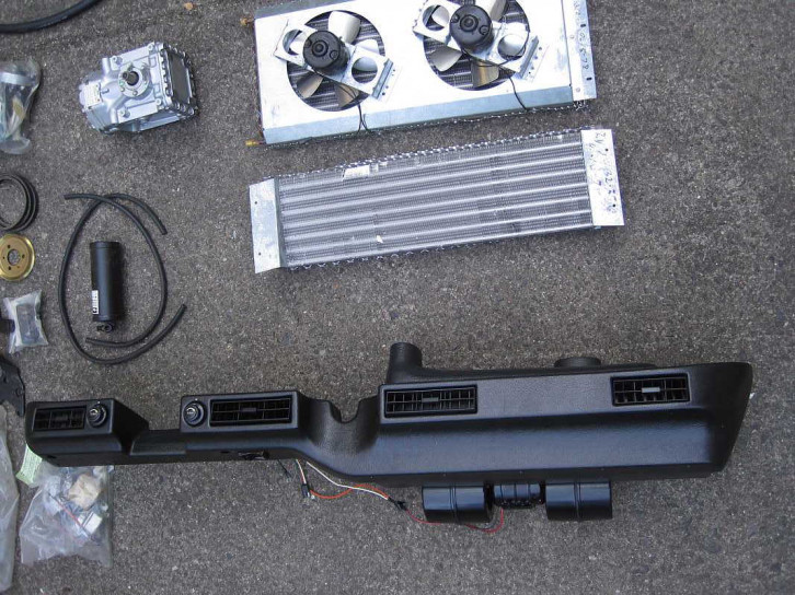 Klimaanlagen die über und vorne hinter dem Fahrer- und Beifahrersitz am Dachhimmel angebracht werden, damit auch der hintere Fahrgastraum besser von gekühlter Luft erreicht wird. Die Kühlschläuche gehen dafür in der B-Säule hinter dem Fahrer zum Dachhimmel. Die Anlage ist für Typ 4 Motoren vorgesehen.