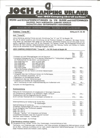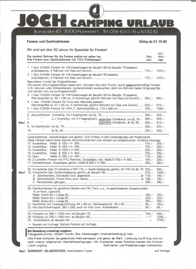 Preisliste und Lieferbeschreibung "Caravan"