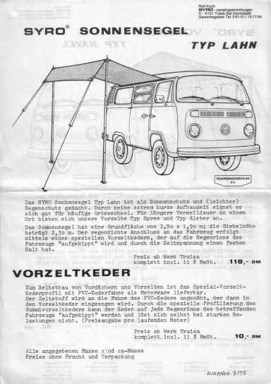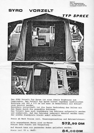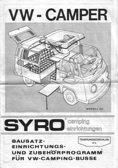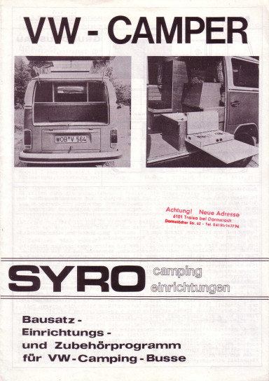 Prospekt eingeheftet am Ende des SYRO-Buches "Do it yourself! VW-Campen"