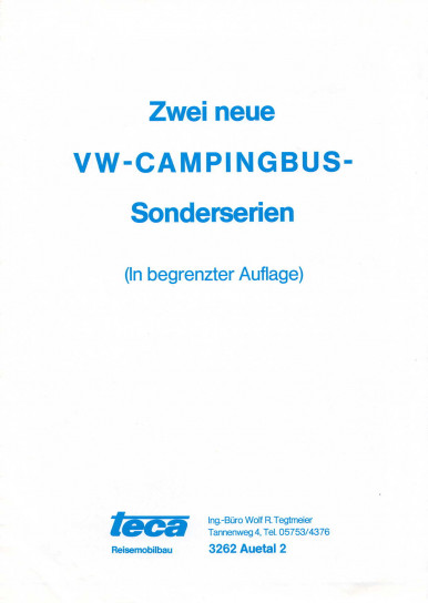 TECA VW T2 Vorführwagen Prospekt mit wenigen Details und Preisen. Genannt wird auch eine Ausstattungsvariante "amazonas".