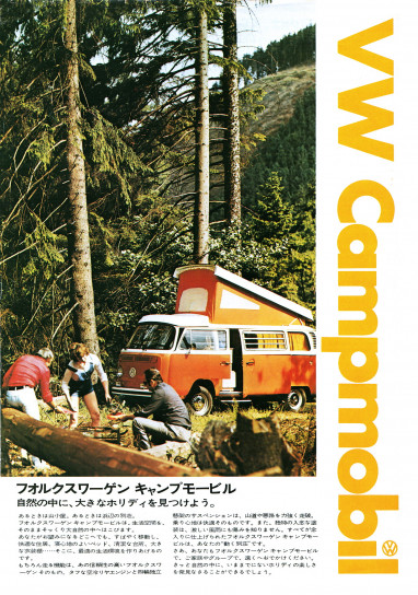 Japanischer VW Camper Prospekt mit SO 73/11 Oxford auf Basis von Modell 23 und AF Motor (46 PS Motor mit 1584 ccm für Länder mit wenig Oktan).