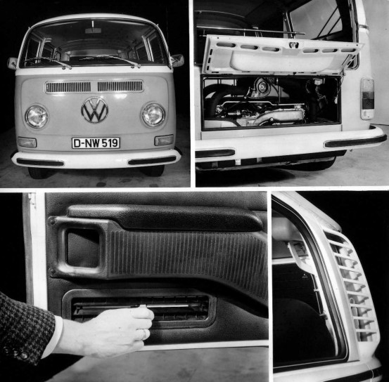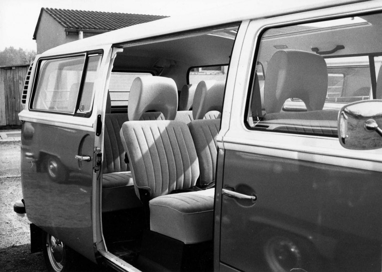 "Außer dem sehr breit gehaltenem Einstieg, dessen Höhe auch noch von älteren Personen geschafft wird, bietet der VW-Bus genügend Knieraum, so daß selbst bei längeren Fahrten keine Komforteinbuße wegen schlechter Platzverhältnisse in Kauf genommen werden muß."