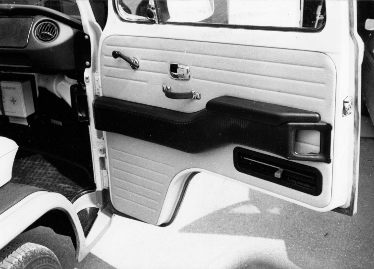 "Die Trittstufen liegen jetzt innerhalb der Türen. Weder Schmutz noch Schneekrusten können sich behindernd auswirken. In der Türe sichtbar der Heizkanal zu den hinteren Sitzbänken."