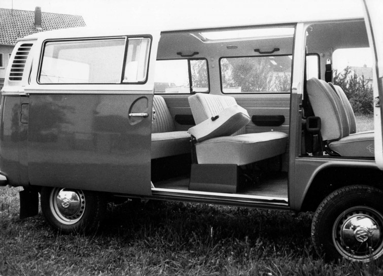 - Schiebetür, die beim T1 ab 1963 erhältlich war und beim T2 Serienausstattung