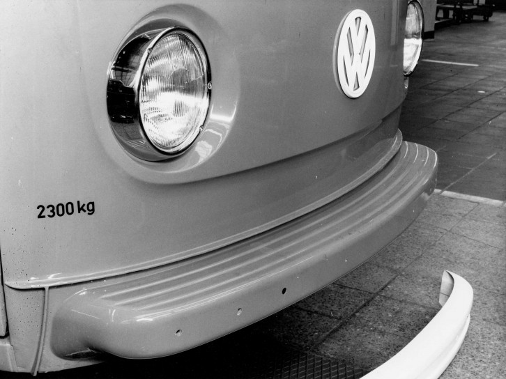 Der neue VW-Bus hat starke Stoßfänger bekommen, hinter denen zusätzlich ein energieverzehrendes Kastenprofil steckt. Das schützt die Karosserie auch gegen unsanfte Stöße. Bein L-Modell läuft außerdem eine dicke Gummileiste über die ganze Länge der Stoßfänger.