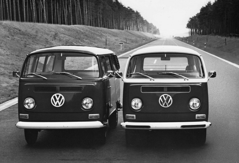 "Drei Jahrzehnte Transporter-Entwicklung im Volkswagenwerk. Mit dem Typ 2 auf Käfer-Basis fing es 1949 an. Bis 1967 liefen 1,7 Mio. Exemplare der verschiedenen Baumuster von