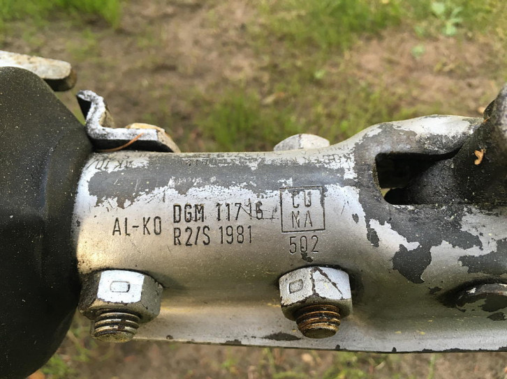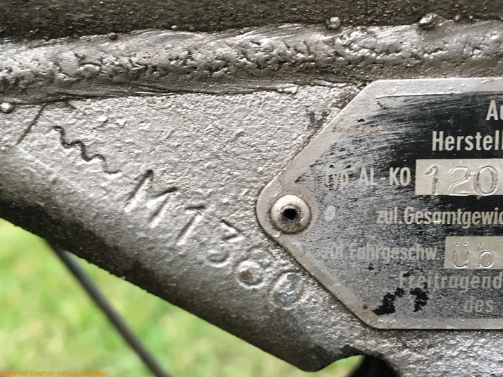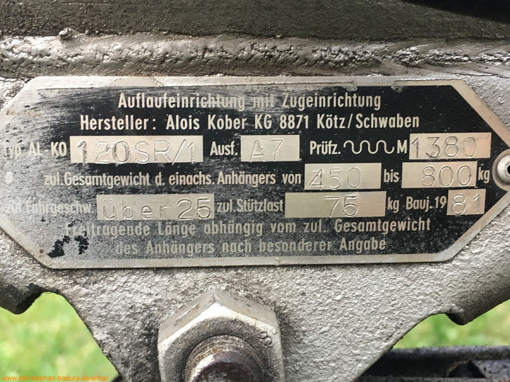 Die Anhängerkupplung ist von AL-KO (ALois KOber AG) mit Auflaufeinrichtung AL-KO "120 SR/1" mit KBA Prüfnummer "M 1380".