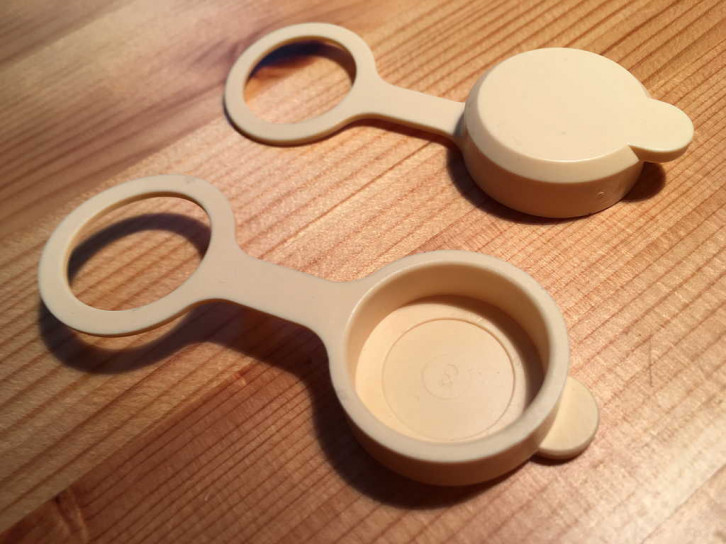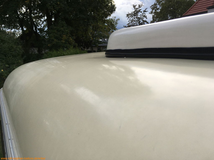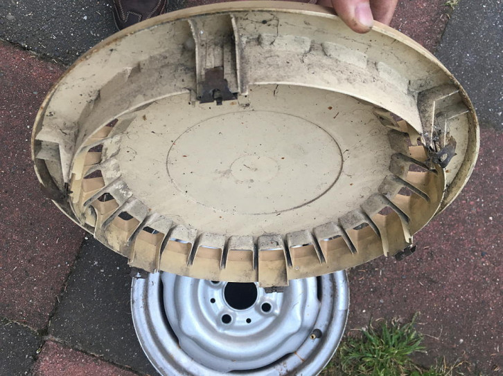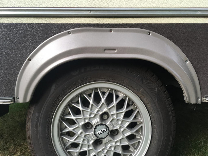Die Originalfelgen haben elfenbeinfarbene Kunststoffradkappen der Firma Hella (solche sind auch im "Das Eriba-Caravan-Programm 1987" z.B. auf dem Titelbild und Seite 5 zu sehen).