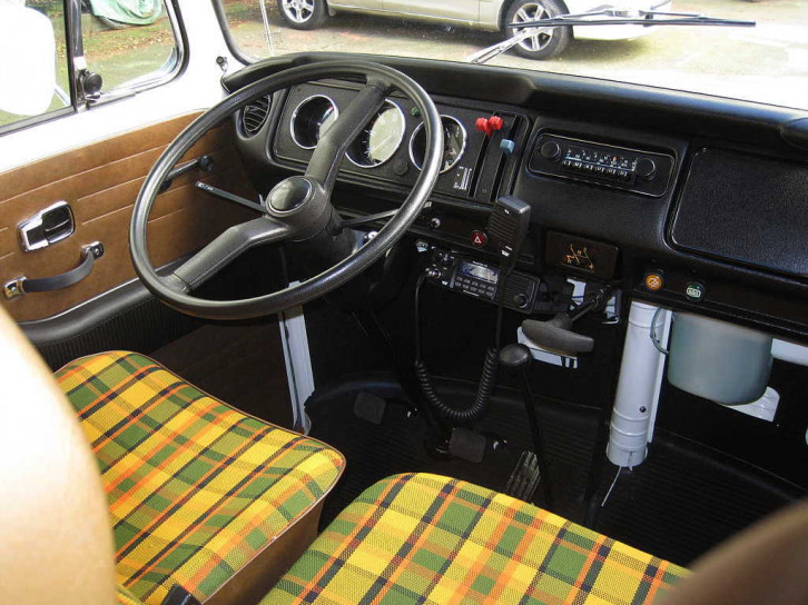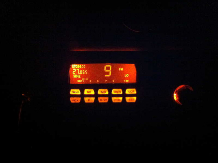 Verbaut ist ein modernes "Team RoadCom TS Multinorm" CB-Funk Gerät für 27 MHz. Umstellbar auf diverse Ländernormen - und mit einstellbarer oranger Display-Beleuchtung. ;-) Historisch passende CB-Funk Geräte haben leider nicht so viele Kanäle wie heute erlaubt und sind damit auch in anderen Ländern nicht immer einsetzbar. In manchen Ländern ausserhalb Europas ist CB-Funk leider gänzlich verboten und muss vorher ausgebaut werden.