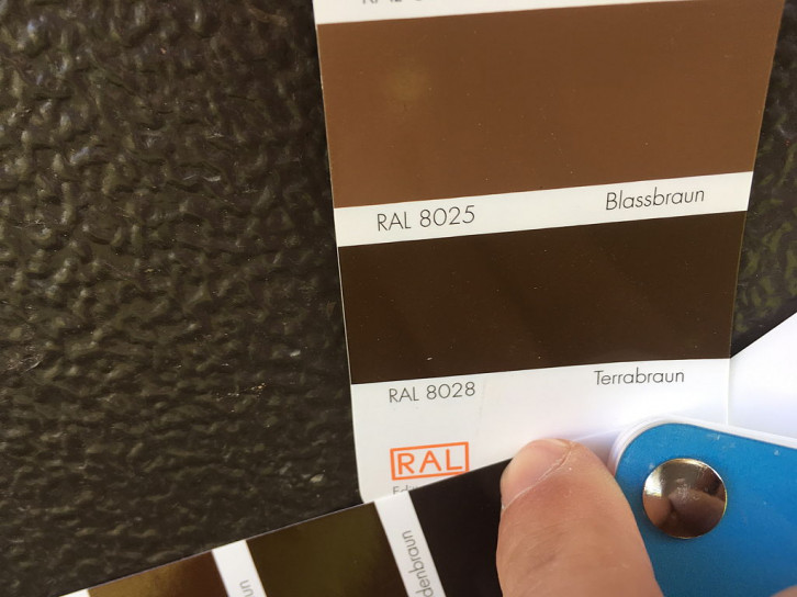 Einen genau passenden RAL Ton habe ich nicht gefunden. Am nächsten kommt RAL 8028 Terrabraun.
