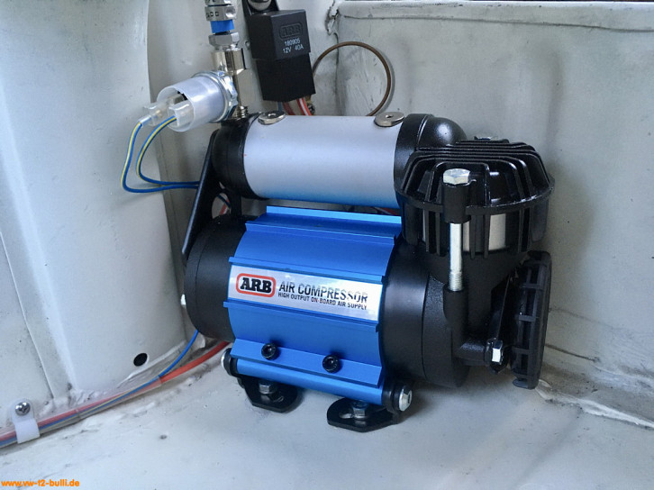 - installierter ARB CKMA12 12V Kompressor bis knapp max 7 bar und 65 l/min bei 2 bar,