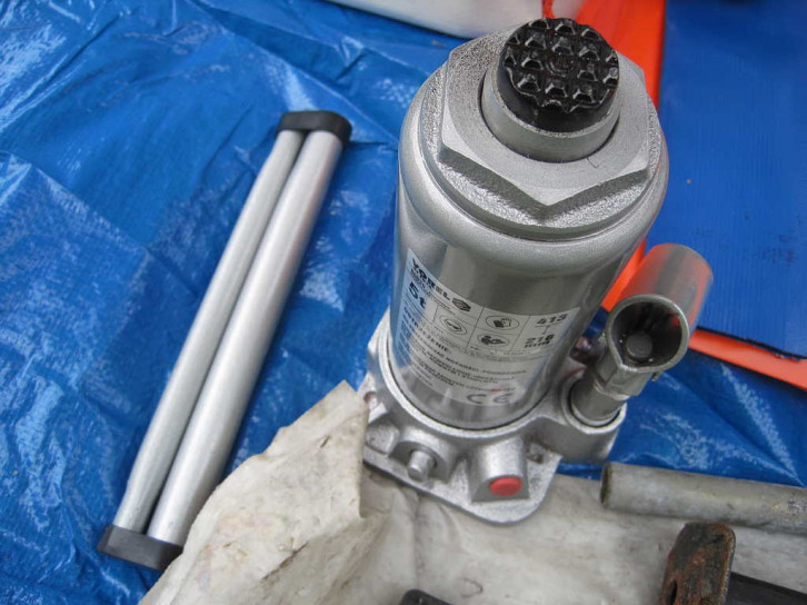 - ein kleiner hydraulischer 5 t Stempelwagenheber,