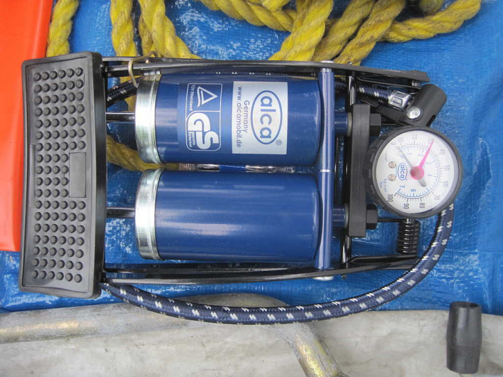 - Fußluftpumpe (Doppelkolben, mit Manometer),