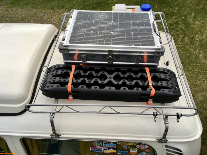 Da wir uns auch auf kleinen Nebenstrecken oder manchmal Offroad mit dem Bulli bewegen in entfernten Ländern mit dünner Besiedelung und ohne Automobilclub-Notruf, haben wir neben üblichen Werkzeug auch ein wenig an Bergungsausrüstung dabei. Nicht nur für uns, sondern oft auch für andere gestrandete Mitmenschen.
