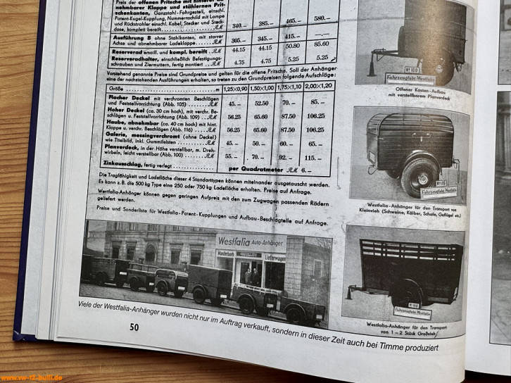 Die Firma Timme wurde 1847 vom Schmied Friedrich Daniel Timme in Magdeburg gegründet. Sein Enkel Friedrich Timme setzte 1935 auf eine neue Geschäftsidee und produzierte die ersten Fahrzeug-Anhänger. In den 30ern und 40ern gab es auch eine Kooperation mit Westfalia inkl. Verkauf und Herstellung, die nach dem Krieg zu DDR Zeit eingestellt werden musste. Nach der Wiedervereinigung nahm man zumindest neben den eigenen Herstellung auch wieder den Verkauf von Westfalia Anhängern auf. Die Firma Timme besteht bis heute unter dem Urururenkel des Firmengründers.