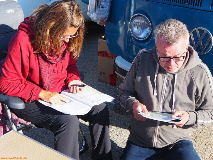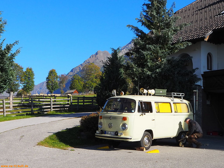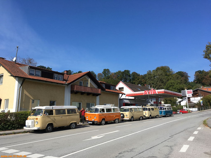 Von Berlin ging es mit andern Berlinern über Landstraßen zum Treffen mit den anderen "Goldenen Oktober" Teilnehmern nach Bad Reichenhall nahe der Grenze Österreichs. Dort erhielten wir das Roadbook für die Woche "Der Goldener Oktober 2018, mit dem VW Bus in den Karst".