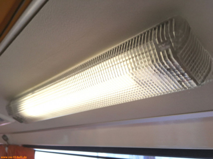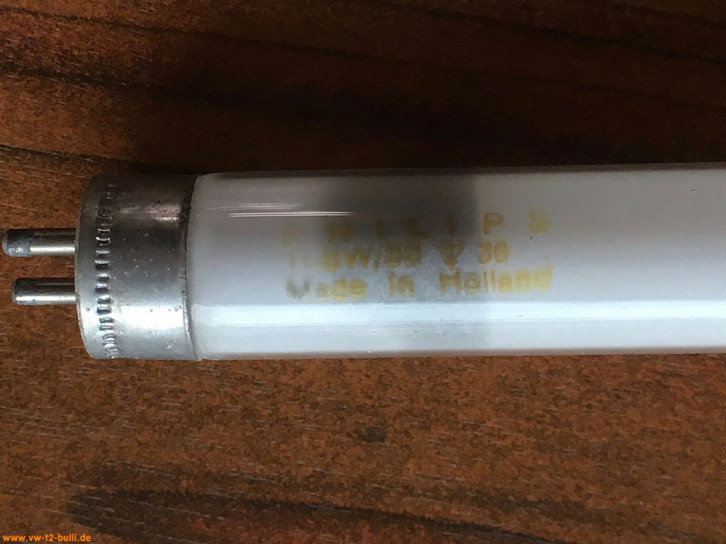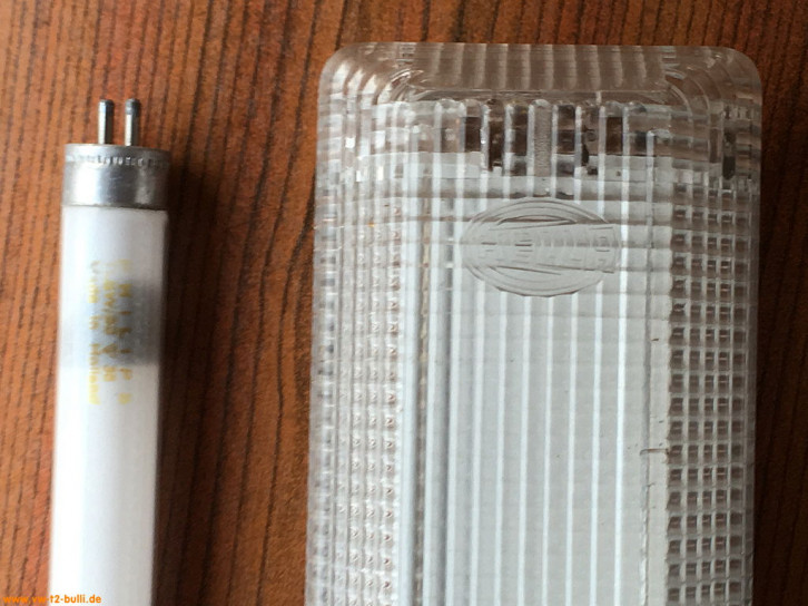 Für unsere Berlin Ausstattung haben wir auch eine sparsame original Hella Innenleuchte der Berlin Ausstattung montiert. Sie hat eine Leuchtstoffröhre T5 5/8" bzw. 16mm Durchmesser x ca. 288mm Länge.