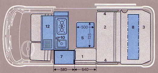 Frühe Campingausstattung ab Januar 1968 und nur für das Modelljahr 1968 mit Bett über die ganze hintere Fläche ähnlich der späteren "Helsinki" Ausstattung, aber ohne Mitteldurchgang. Diese Ausstattung hat gegenüber der SO 60 einen Propangaskocher und wird deshalb und dortigen Auflagen nicht in den USA angeboten.