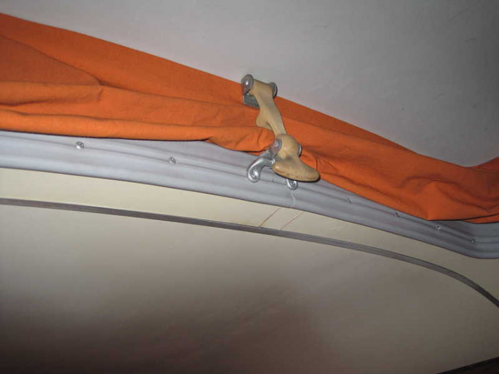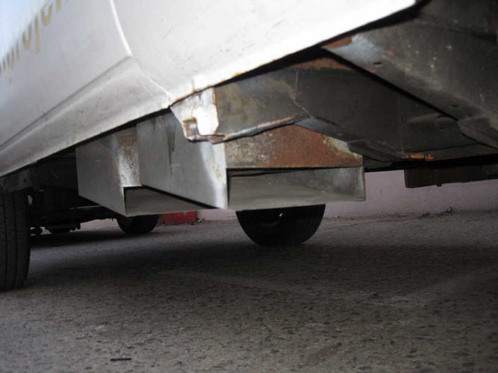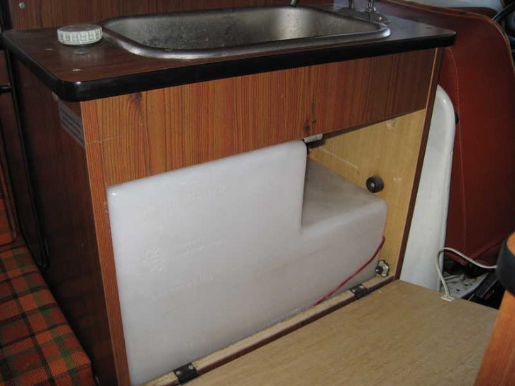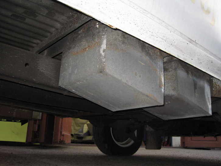 Unter der seitlichen Sitzbank befinden sich zwei Staukästen weit aus dem Unterboden rausragend mit Bodenentlüftung für je eine Gasflasche.