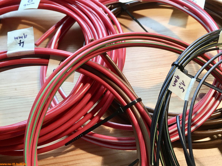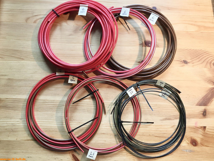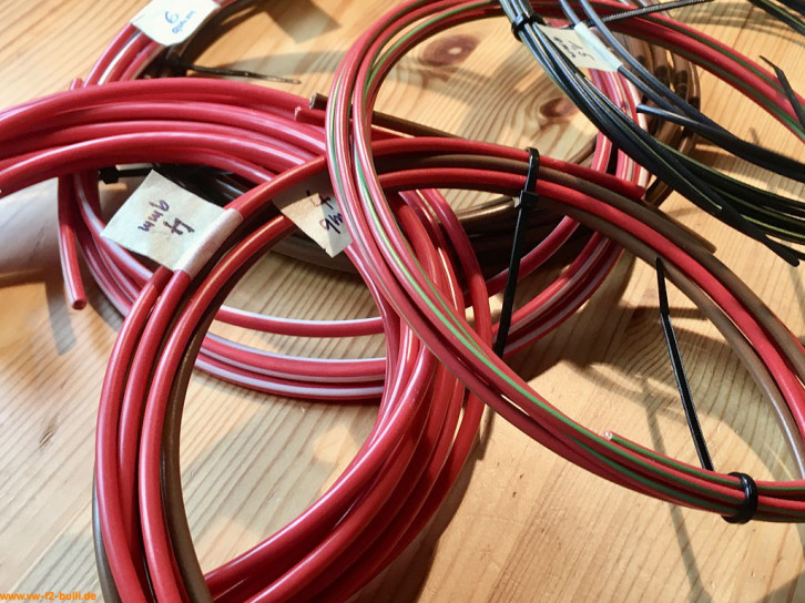 Kabel und Stecker in verschiednen Dimensionen und Farben sind nötig aus dem KFZ-Elektrik Handel.