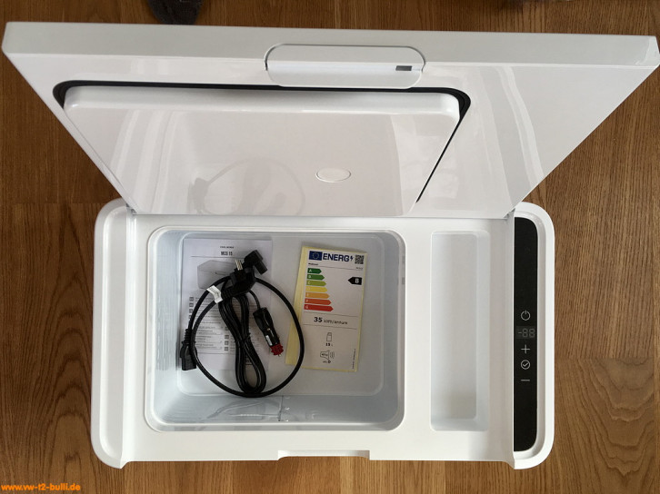 Nachdem unsere große, alte, gebrauchte, aber eher moderne Absorber-Kühlbox für Gas/12V/220V 2023 mangels Kühlleistung nach 12 Jahren ausfiel, sollte etwas sparsames für 12 V in unserem Bulli einziehen. Den Umbau des passiven Westfalia-Berlin-Kühlfachs schied aus, da es auch dauerhaften Platzverlust dahinter für den dann notwendigen Raum der Kühltechnik bedeutet hätte (derzeit lagern dort bei uns neben FI-Schalter und ein wenig Technik vor allem Handtücher & Decken). Ausserdem ist ein mobiler Kühlschrank so auch besser in unserem Wohnwagen, Reisen mit Alltagsautos oder bei Gartenfesten vielseitiger verwendbar.