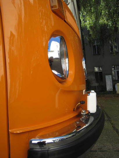 Original war von VW bei späten T2 aber nur eine Variante mit schwarzem Kunststoffgehäuse verbaut und etwas kleiner (170 x 83 mm).