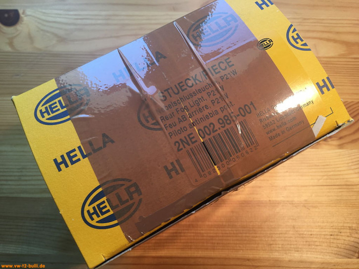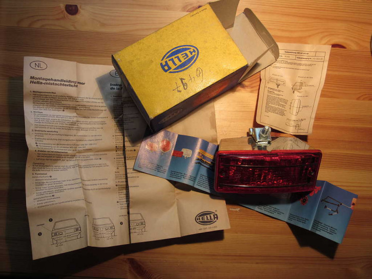 Mit in der Verpackung waren die Allgemeine Bauartgenehmigung (ABG) aus dem Jahr 1979, die Einbauanleitung möglicherweise aus dem Jahr 1983 und ein kleines Werbefaltblatt zu Hella Produkten. Kabel und Leuchtmittel (Glühbirne) sind nicht enthalten.