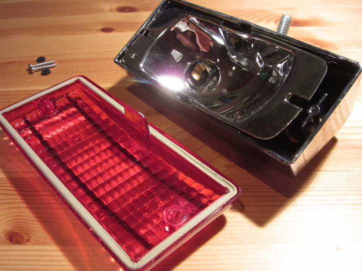 Dieses schmale Nebelschlusslicht von Hella hat ein verchromtes Metallgehäuse.