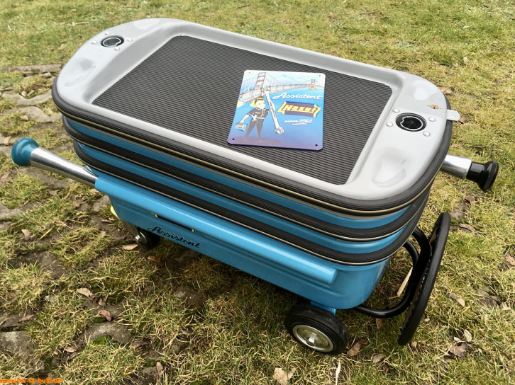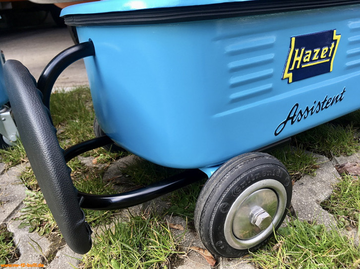 Anfang der 1950er kam bei HAZET die Idee auf statt schwerer Werkzeugkisten ähnlich wie Teewagen einen Werkzeugwagen mit verschiedenen Ebenen zu fertigen. Erste Patente wurden Ende 1953 eingereicht und zeigten den Hazet Assistent 160 mit Stuhl und Lampe, praktisch absenkbar und verschließbar. Viele kleine und große Änderungen sollten folgen und machten den HAZET Assistent zu einer Design Ikone und heute noch beliebt in so mancher Oldtimer-Werkstatt. Natürlich folgten in den 1970ern bis heute auch größere und kantigere Designs, die aber hier nicht weiter betrachtet werden.
