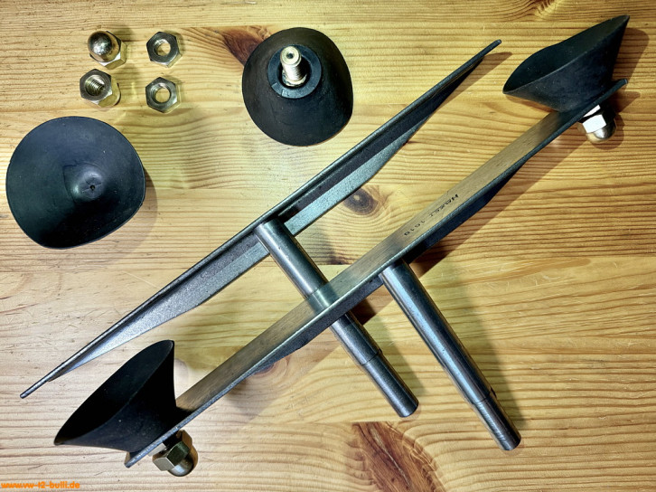 Dieses Zubehörpaar mit Gummisaugern für Glasscheiben und glatte Teile ist für die Säulen von HAZET Assistent Werkzeugwagen "161", "162", "166TS" und "172HD" und weitere. Die Flügelmuttern bzw. später Hutmuttern halten den Unterdruck der Gummisaugern nach dem Andrücken von Scheiben u.ä.