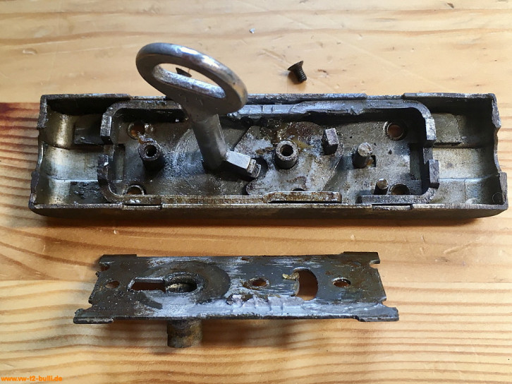 Das verbaute Schubstangenschloß ist recht ähnlich den heutigen der Firma "JuLie" (gegründet 1874 von Julius Niederdrenk in Velbert nicht unweit von HAZET).