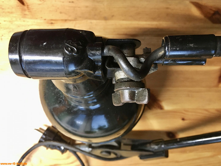 Die zusammengelegt 600 mm lange Gelenkleuchte mit 2 m Kabel ist für Werkzeugwagen 160, 161, 162. Die Leuchte hat 3 Gelenken und ist dadurch nach allen Seiten und in der Höhe verstellbar. Sie wurde in den Knauf der Säulen gesteckt. So wurde es Licht für den Monteur mit bis zu einer damals sehr hellen 100 W Glühbirne.