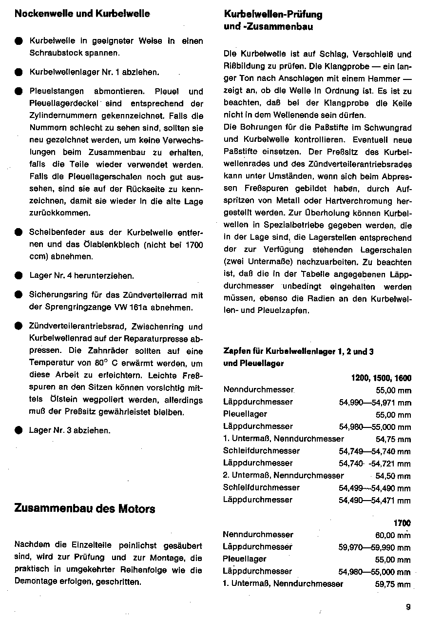 Kurbelwellenprüfung und Zusammenbau