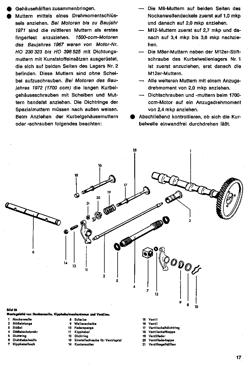 Bild 23: Montagebild von Nockenwelle, Kipphebelmechanismus und Ventilen