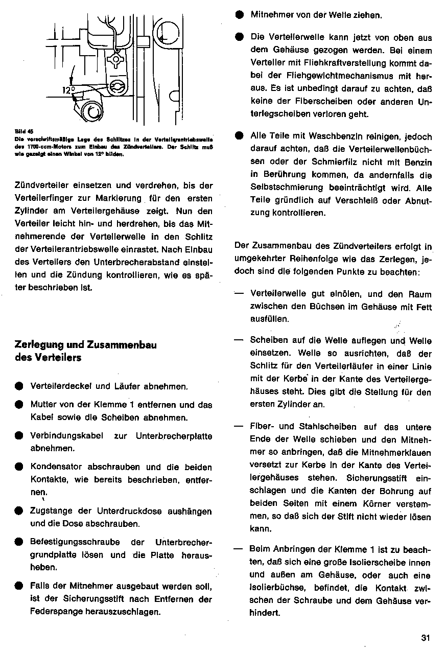 Zerlegen und Zusammenbau des Verteilers