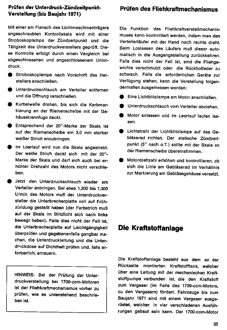 Prüfen der Unterdruck-Zündzeitpunkt-Verstellung (bis Baujahr 1971)