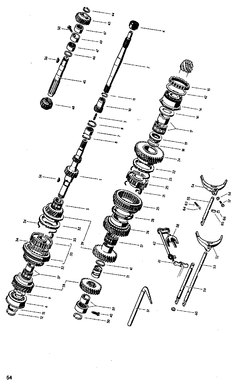 Bild 68: Montagebild der Getrieberäder und -wellen des Transporter-Getriebes