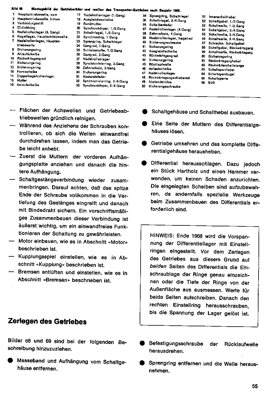Reparaturanleitung VW-Transporter / Bus ab 1968