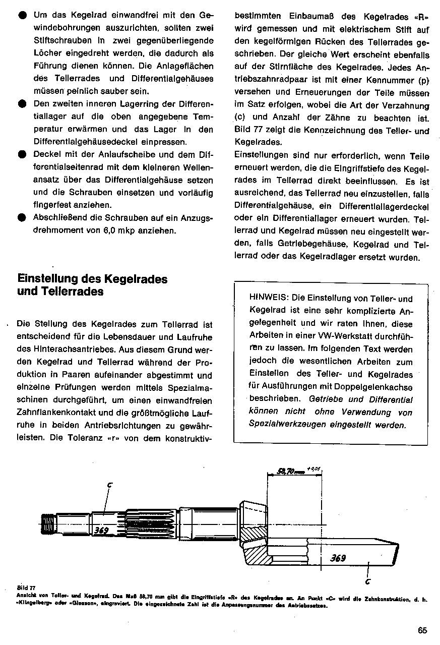 Einstellung des Kegelrades und Tellerrades