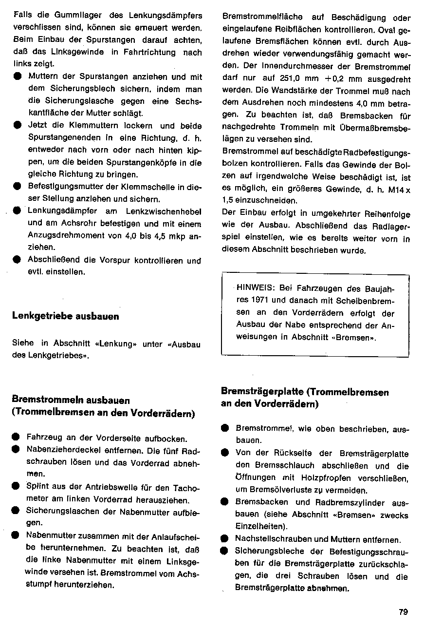 Bremstrommeln ausbauen (Trommelbremsen an den Vorderrädern)
