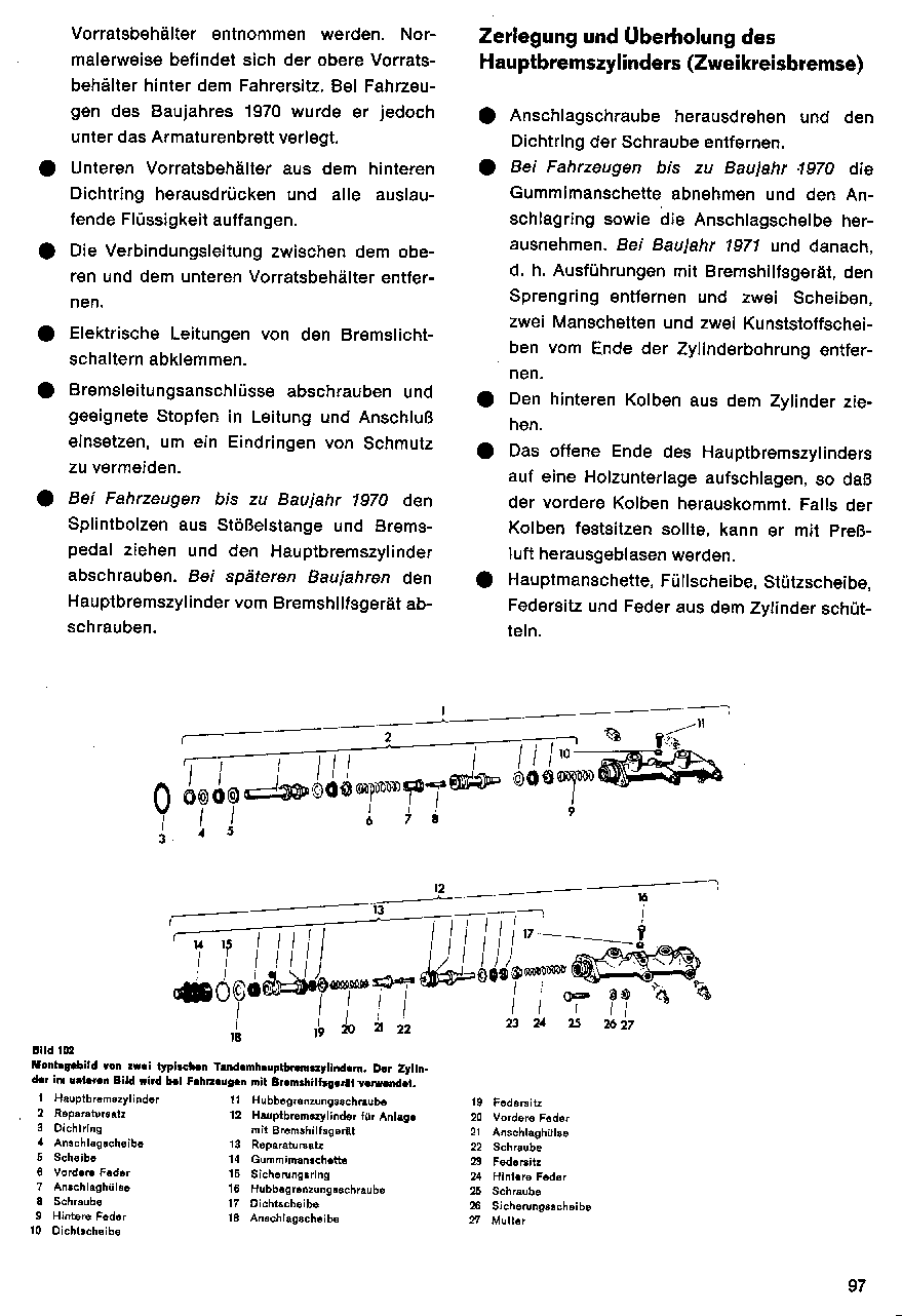 Zerlegung und Überholung des Hauptbremszylinders (Zweikreisbremse)