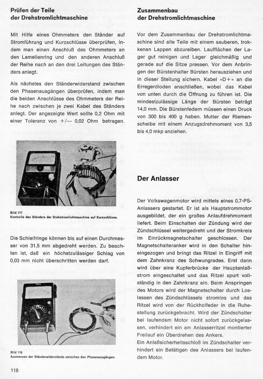 Prüfen der Teile der Drehstromlichtmaschine