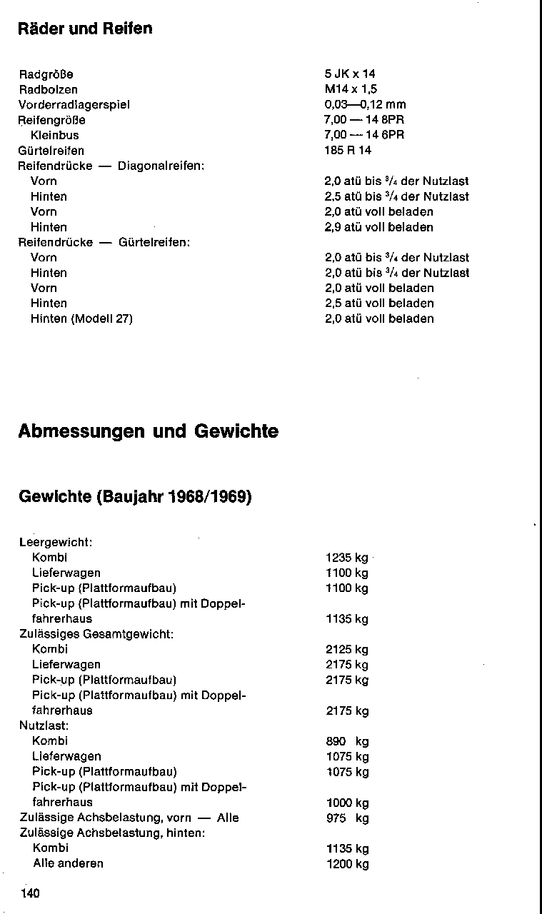 Gewichte (Baujahr 1968/1969)