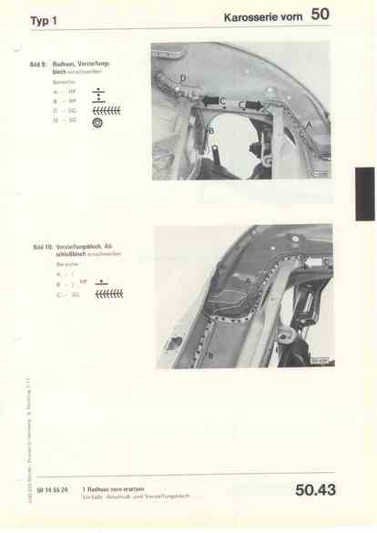 Karosserie Reparatur-Leitfaden Typ 1 April 1975, Seite 50.43