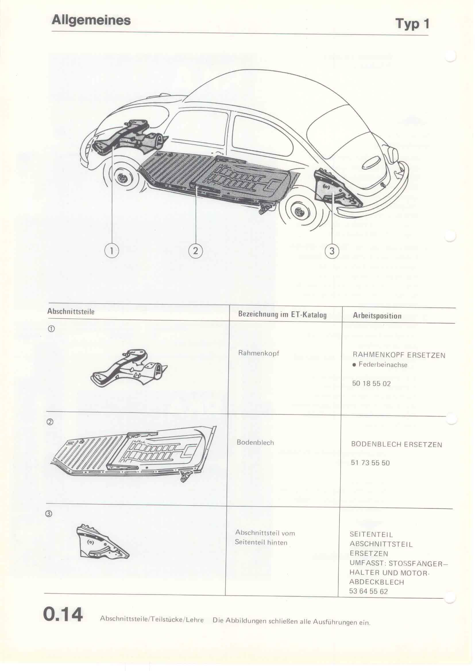 Karosserie Reparatur-Leitfaden Typ 1 April 1975, Seite 0.14