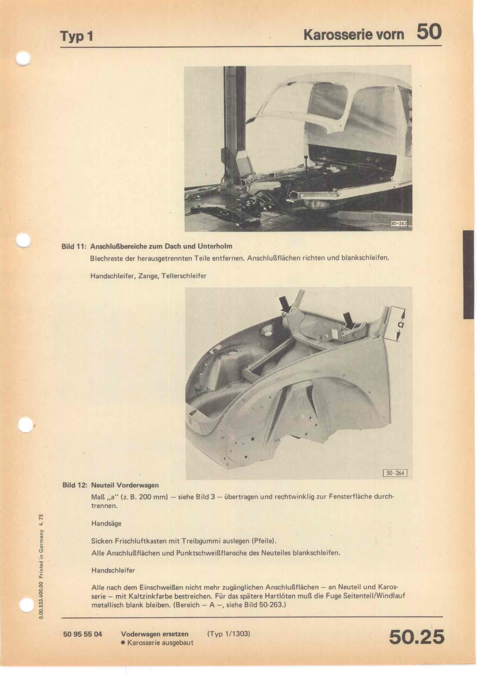 Karosserie Reparatur-Leitfaden Typ 1 April 1975, Seite 50.25